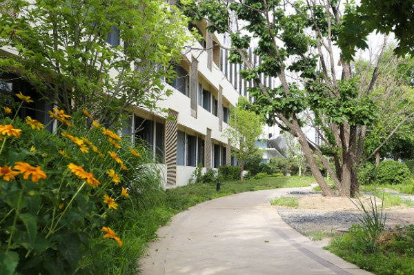 占地面积18000平米,建筑面积21000平方米,其中园林占地面积达7000平方米,绿意覆盖率高,亭台楼阁、花草树木相映成趣,营造出自然雅致的居住环境。主体建筑为“回”字形,体现天人合一的主题思想,采用古典与现代相结合的设计风格,既具文化底蕴,又不失现代便捷,向长者传递“健康至上”的核心理念。房间均按照老年人住宅标准建设,以人为本,崇尚自然、环境养生、关爱健康,每一处细节都贴合长者生活习惯,打造赏心悦目、宜居舒适的生存空间。
